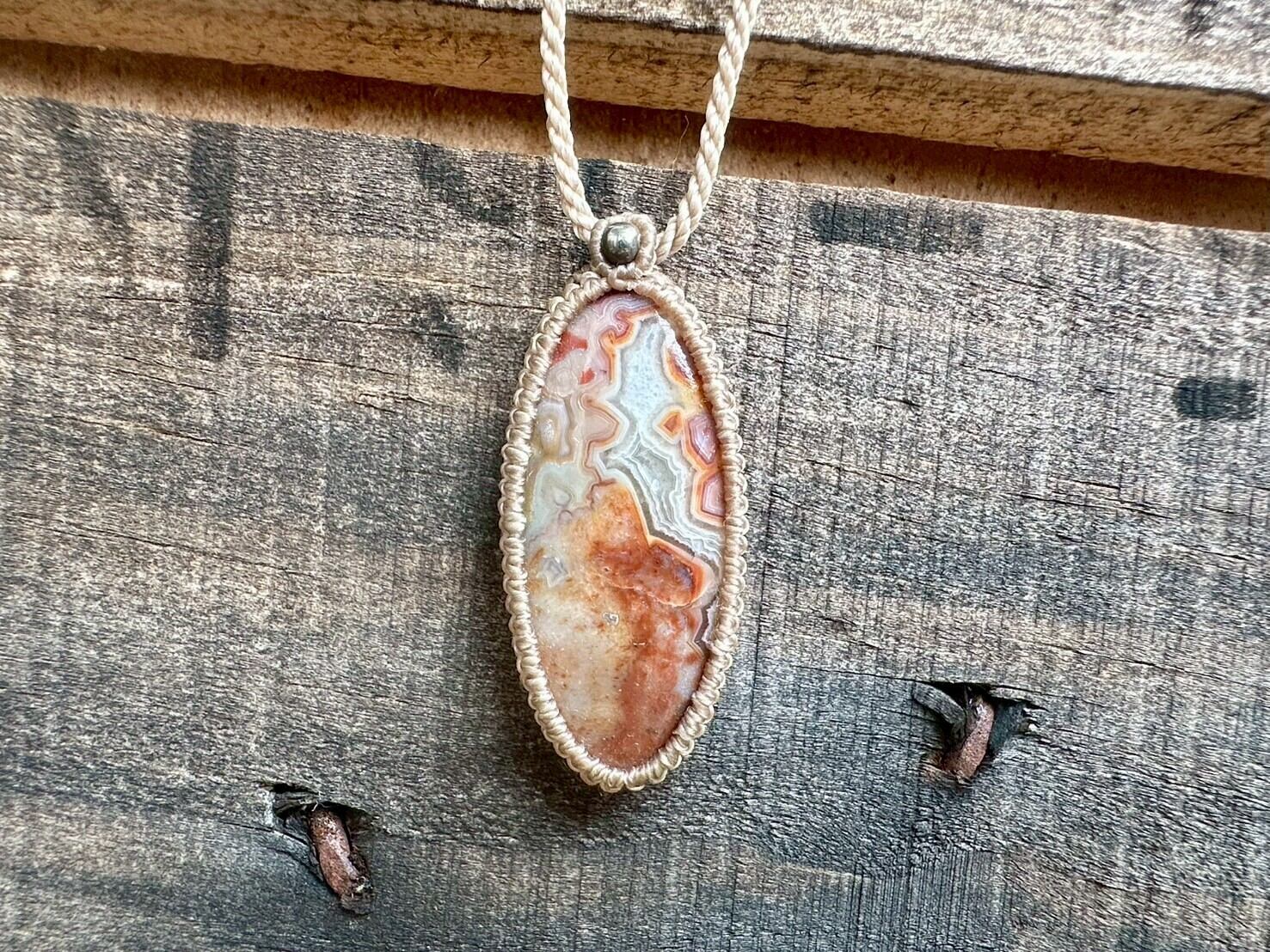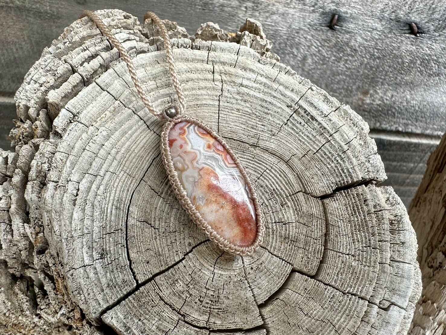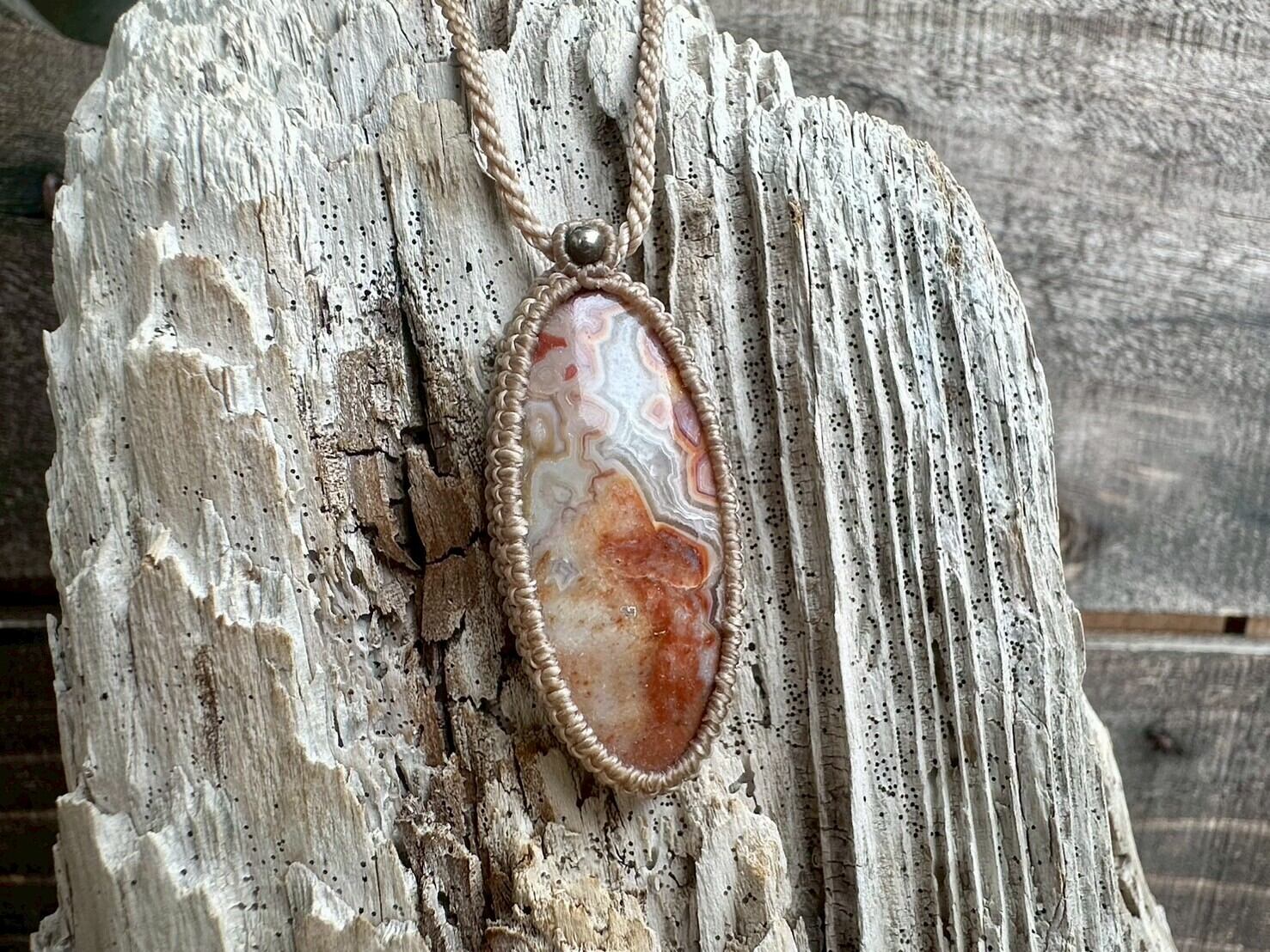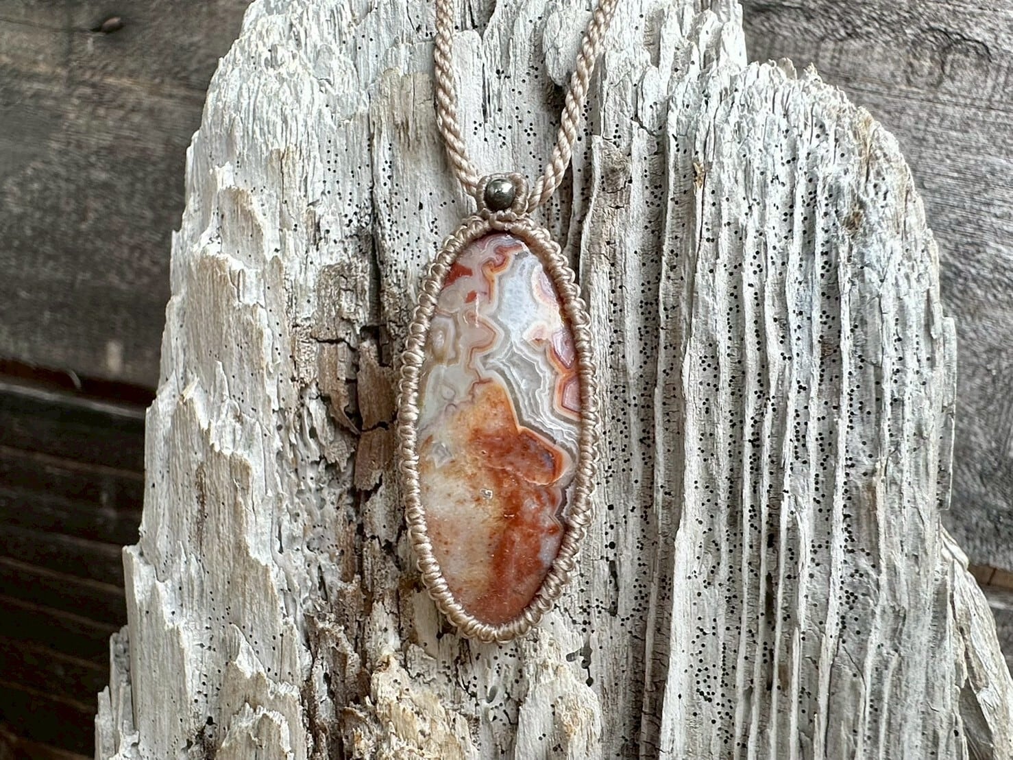ひとつとして同じものはないこの石を、丁寧にマクラメで包み、身につけやすいネックレスに仕立てました。