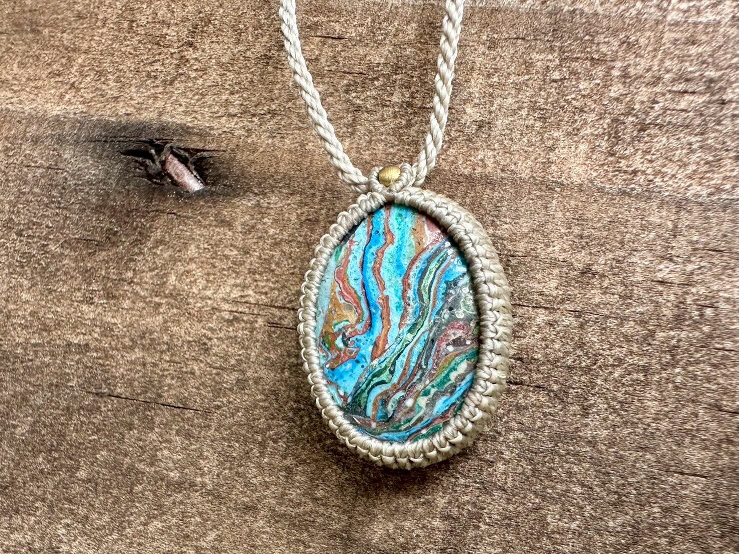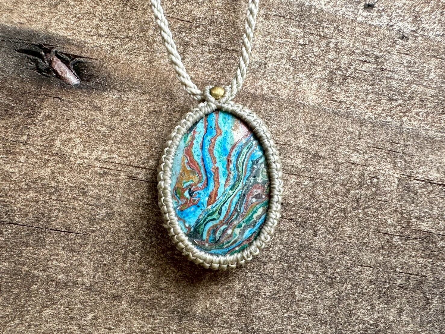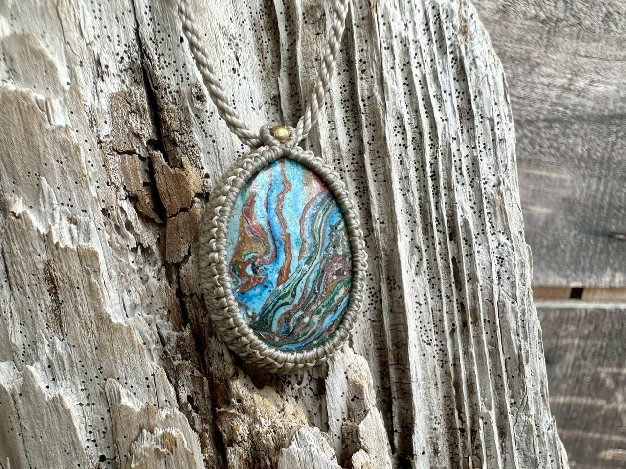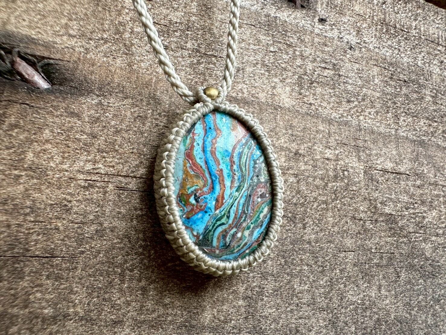 個性的で力強い石の魅力をシンプルなマクラメ編みで包み仕上げました。