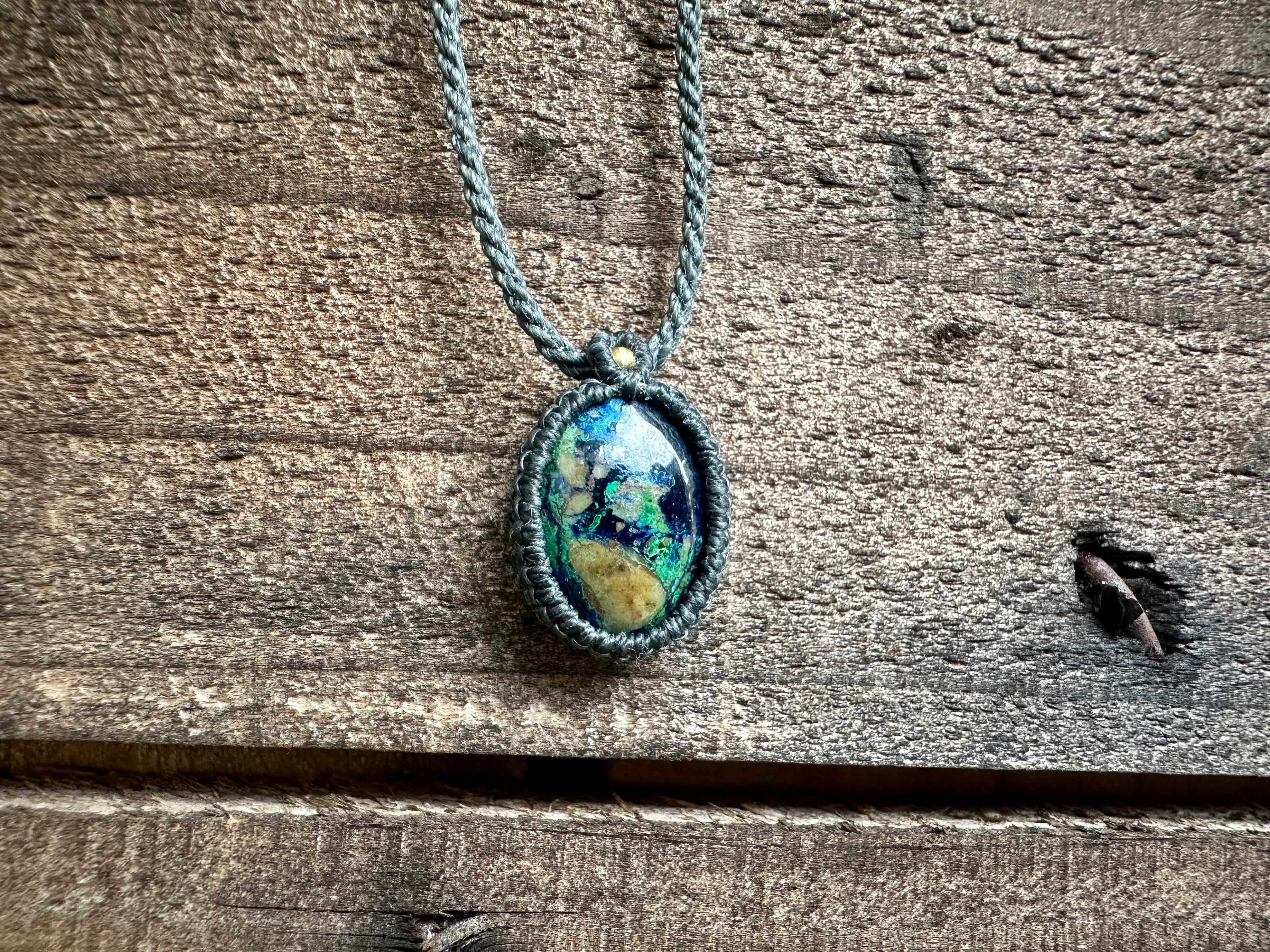 深みのある色合いが魅力的なルースをシンプルなマクラメ編みで仕立てました。